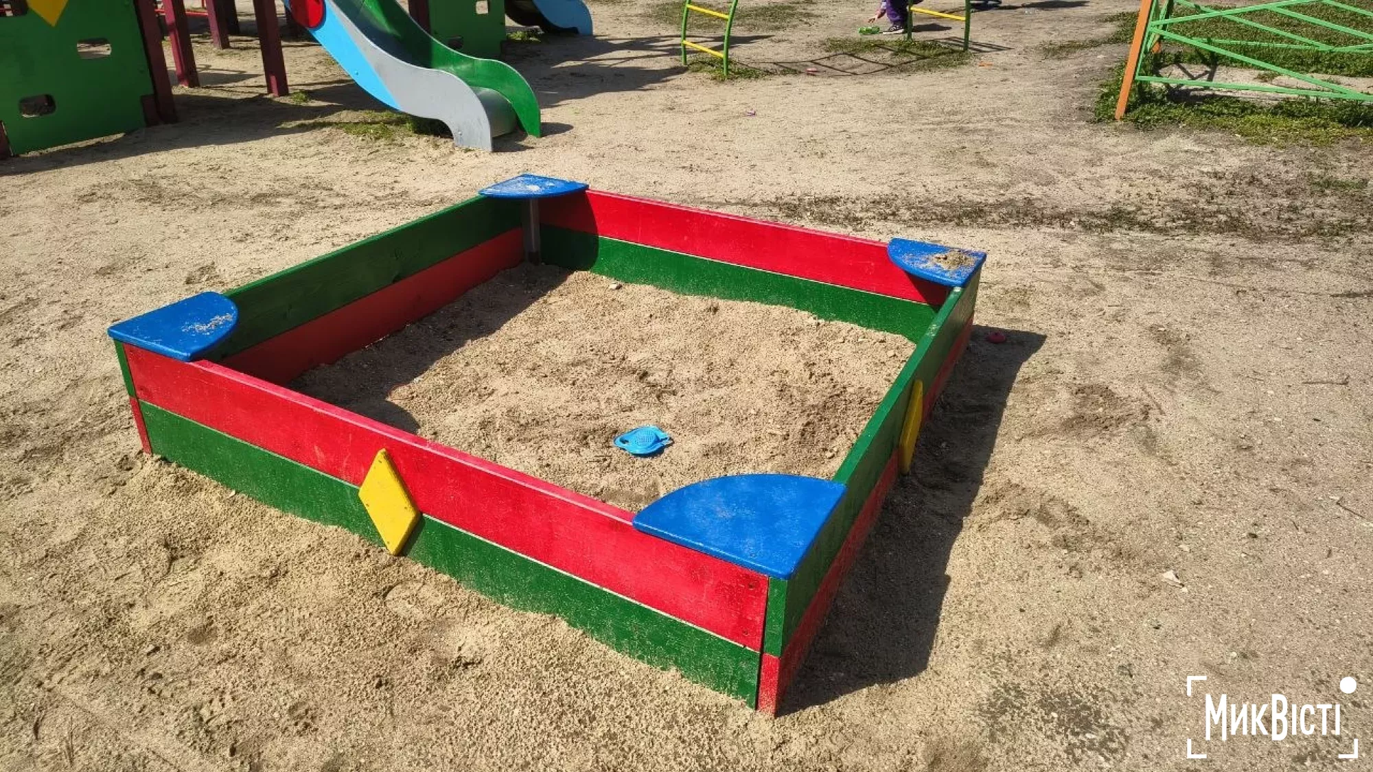 У пісочницях поки не видно оновлення піску. Проте, як припускають місцеві жителі, його не привезли через дощі.
