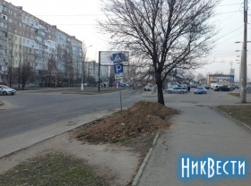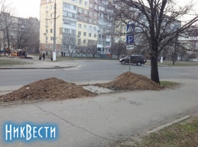 На пересечении улиц Севастопольской и Комсомольской, недалеко от торгового дома «Южный Буг» в Николаеве происходят подготовительные работы по установке рекламной конструкции.