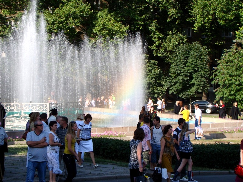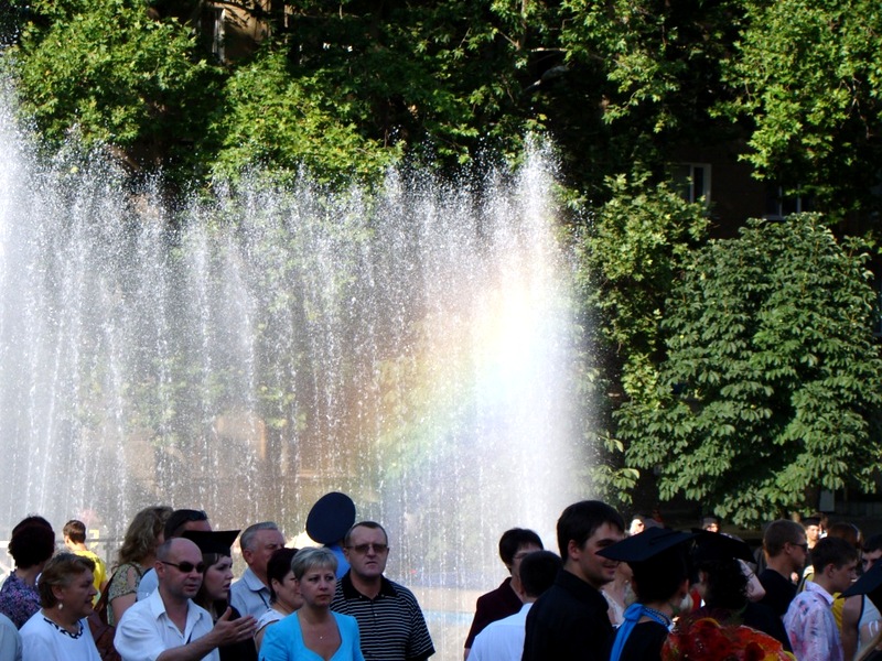 Когда выпускники подошли к ДК, в фонтане была видна радуга.