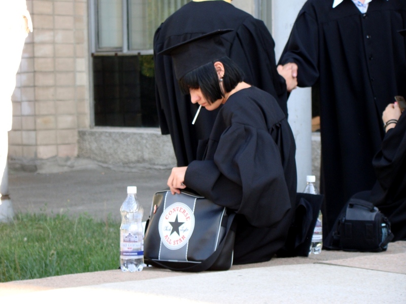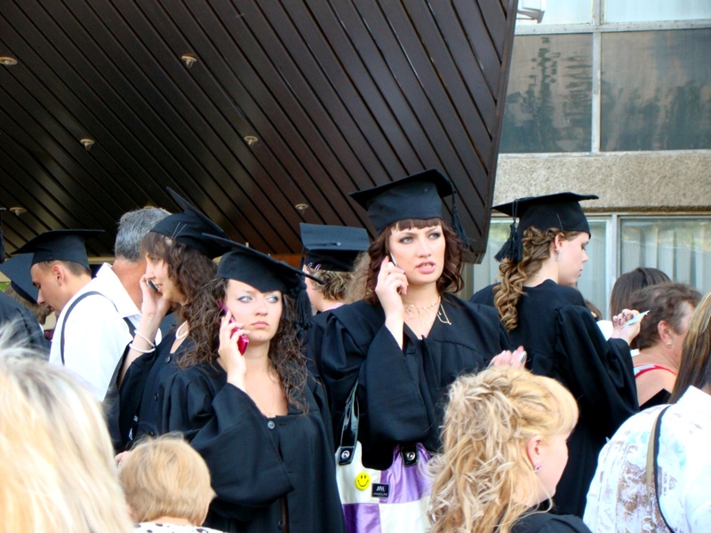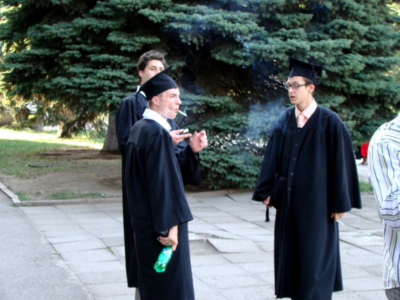 Под черными балахонами студентов скрывались вечерние наряды, а сама атмосфера вечера была очень радостной.