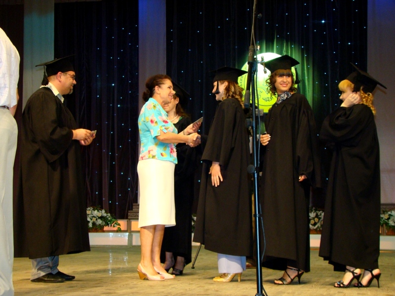 На выпускной вечер пришла советник главы областной рады Тамила Бугаенко, которая вместе с деканами вручила лучшим студентам их дипломы. Но поздравительную речь чиновник почему-то не подготовила.