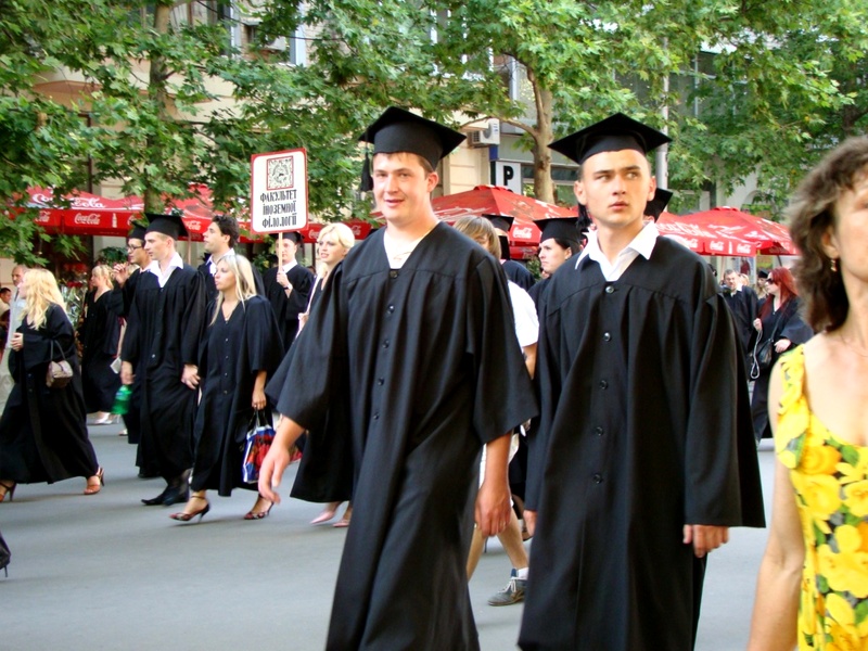 3 июля вдоль улицы Советской торжественно прошли молодые люди в черных мантиях и шапочках-конфедератках. Это выпускники Черноморского государственного университета имени Петра Могилы следовали к ДК Судостроителей, чтобы получить дипломы бакалавров и магистров (специалисты получали дипломы в стенах университета).