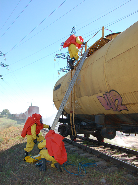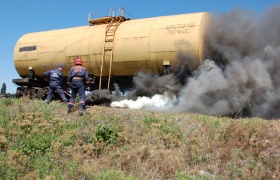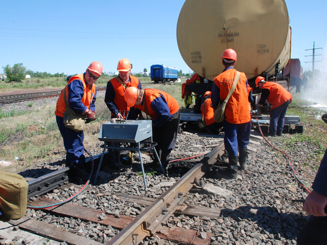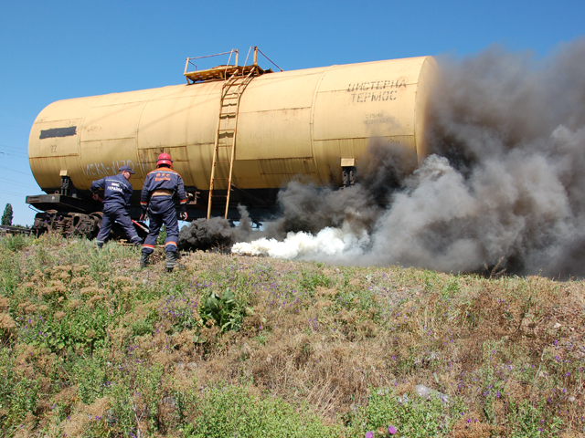 Следующим, по тактическому замыслу, в результате схода с рельсов вагона из состава пассажирского поезда и последующим столкновением с грузовым поездом на участке от станции «Николаев-грузовой» до станции «Николаев» произошел сход и разгерметизация одной из цистерн, загруженной концентрированной соляной кислотой.