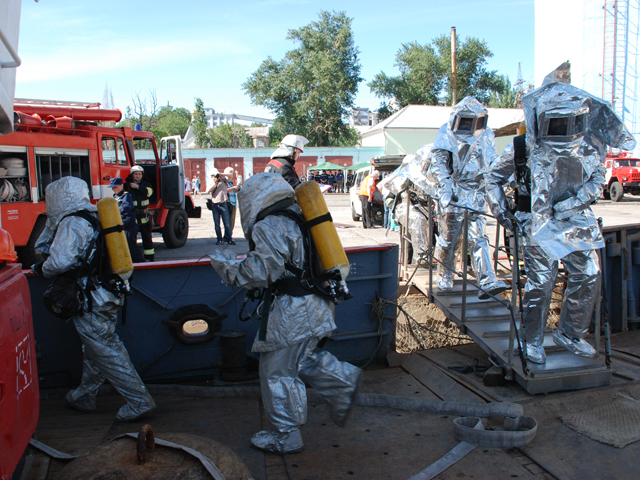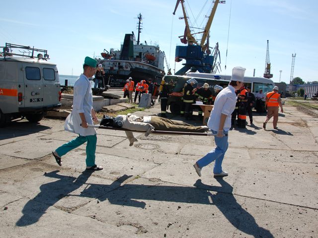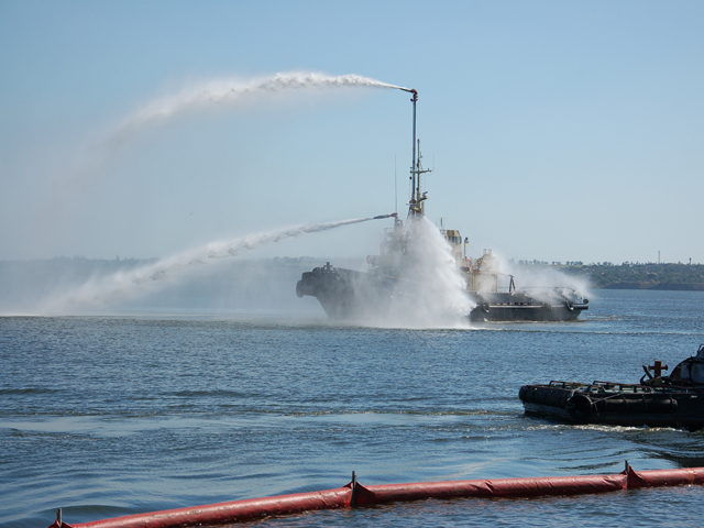 Следующее испытание для участников учений было связано с пожаром в машинно-котельном отделении судна, возникшем из-за нарушения правил пожарной безопасности при перегрузке дизельного топлива на причале ГП «Николаевский морской торговый порт». Во время пожара, площадь которого составила 120 квадратных метров, погибли 3 человека, еще 4 члена экипажа остались на судне.