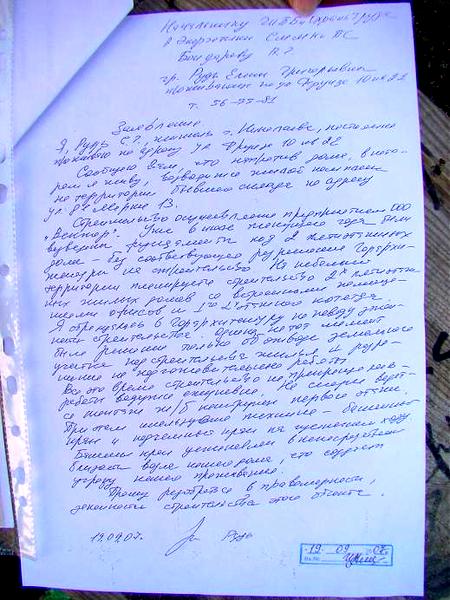 После этого, осенью 2008 года жители узнали о новом «сюрпризе». В двух метрах от входной двери подъезда планировалось восстановить дорогу, по которой станут ездить машины к соседнему дому, который только строится. Жители настаивали на том, что новостройка по документам зарегистрирована на улице 8 Марта, а их дом находится на улице Фрунзе. Соответственно, и подъезд к новостройке должен быть с улицы 8 Марта. После долгих общих собраний и споров заместитель директора ООО СК «Вектор С» (фирма, которая строит дом) Валентин Пасниченко согласился с мнением жителей, и проезжую часть под окнами дома отменили.