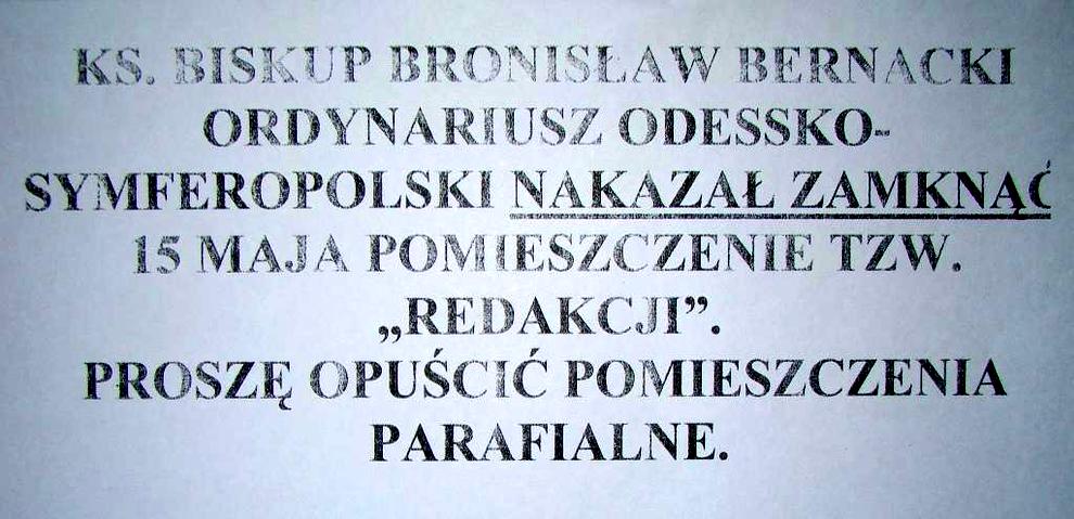 Это противоречит постановлению епископа. И епископ, и консул Польши говорили мне, что это распоряжение требует убрать светские организации с территории костела.