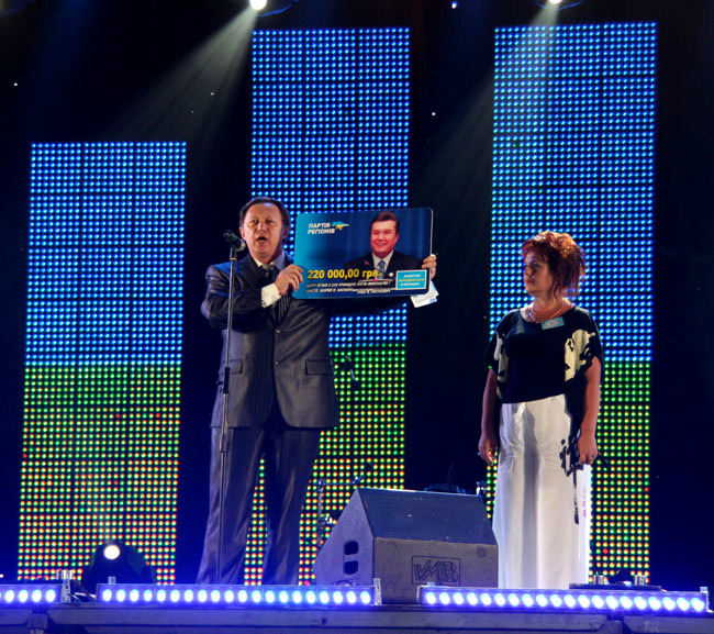 Сначала он во второй раз подарил городу чек на 220 тыс. грн. на приобретение двух машин «скорой помощи» от Виктора Януковича. Отметим, что этот же подарок днем ранее уже торжественно презентовал Николай Круглов.