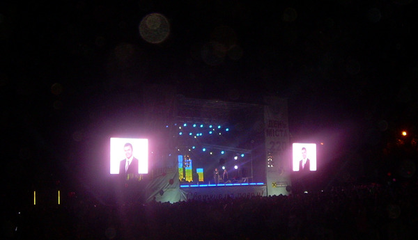 Вероятно, регионалы осознали, что о том, что происходило на торжественной сессии городского совета, узнает не столько много людей, как им хотелось, и решили воспользоваться случаем. Все, кто находился в этот момент на площади Ленина, в ожидании выступления звезд эстрады на больших экранах наблюдали фотографию Виктора Януковича и уж точно запомнили, что же он им подарил.