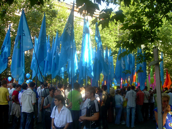 Желание пройти по улицам Советской и Адмиральской изъявили две крупнейшие политические силы – БЮТ и Партия регионов. К ним присоединился еще и «Фронт перемен». Естественно, «Фронт перемен» не мог проигнорировать муниципальный парад, ведь в президиуме, откуда наблюдали за ходом парада, находился не только руководитель областной организации, герой Украины Н. Романчук, а и руководитель всеукраинской организации А. Яценюк.