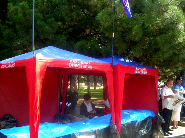Несмотря на то, что регионалом Ю. Гранатуровым было заявлено: «Агитпалаток в местах массовых мероприятий в этот день не будет», сторонники В. Януковича выставили свои посты в самом центре событий.