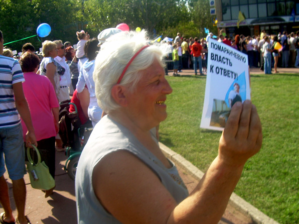 Партия регионов расставила свои «агитпосты» вдоль всей улицы Советской и на улице Адмиральской. Не пожалели регионалы и агитматериалов: флажки, открытки с поздравлениями от Виктора Януковича и, что больше всего возмущало жителей города, совсем не праздничные листовки с текстом: «Помаранчевую власть к ответу!»