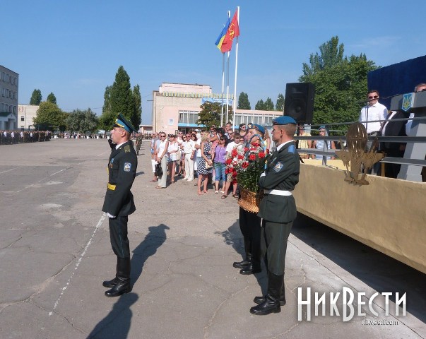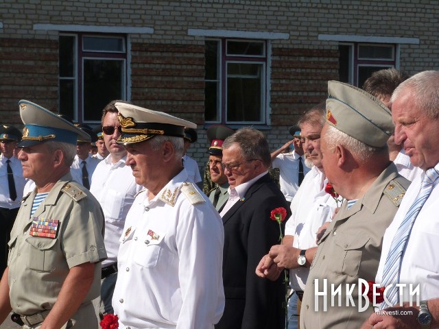 Временный мэр Николаева, секретарь городского совета Владимир Коренюгин, а также глaввpaч БCMП, депутат Николаевского горсовета от партии регионов Александр Демьянов поздравили всех присутствующих с праздником. Под гимн Украины происходило торжественное возложение цветов.