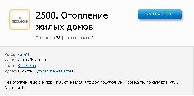 По-прежнему нет отопления по адресу 8 Марта, дом 1, при этом ЖЭК отчитался, что дом подключили.