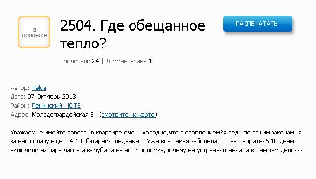 Ниже текст жалобы по данному адресу: