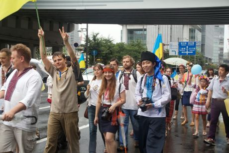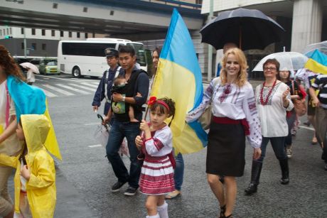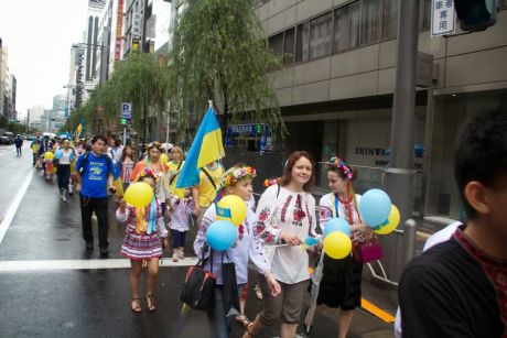 Сотни людей в вышиванках прошлись по Токио за мир в Украине
