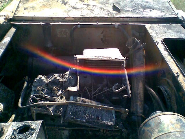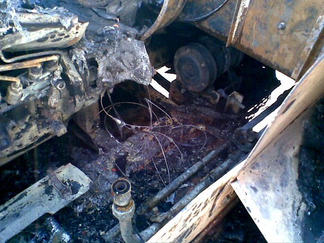 Прибыв на место, спасатели помогли комбайнеру окончательно ликвидировать загорание. Но, к сожалению, огонь успел многое повредить – уничтожены колеса и поврежден двигатель, сильно закопчена водительская кабина. Если бы не водитель, который умело локализовал пожар, задействовав аж три огнетушителя, то от комбайна мало что бы осталось.