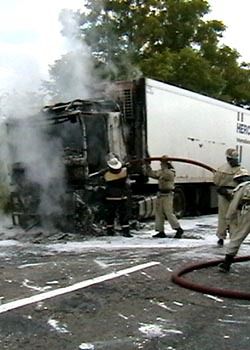 На место происшествия прибыло подразделение МЧС по охране Баштанского района. Огонь удалось одолеть только «накрыв» тягач огнетушащей пеной. Пожар успел уничтожить передние колеса, резиновые части двигателя, обшивку кабины. Повреждена передняя часть рамы, внешняя стенка прицепа и кабина водителя.