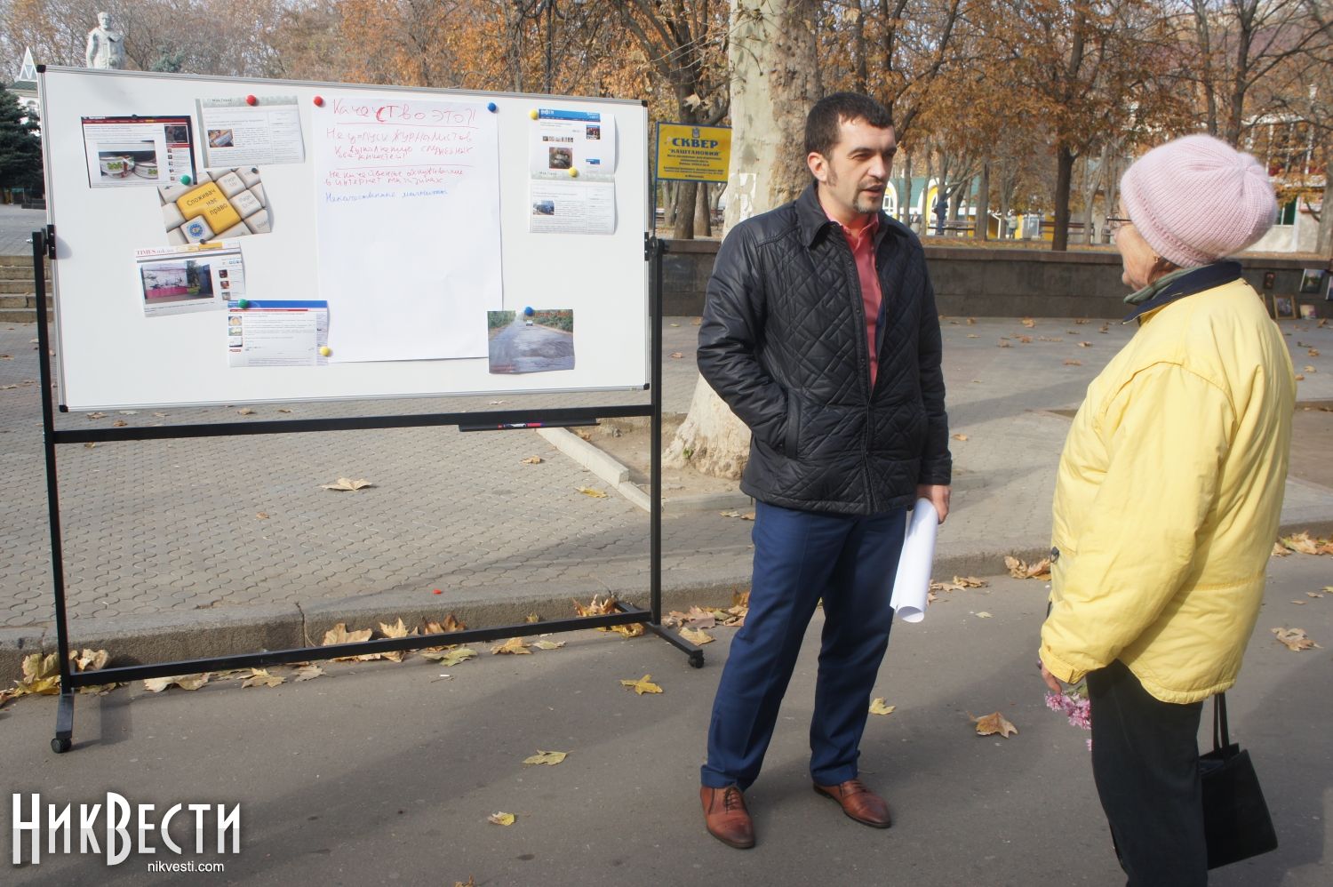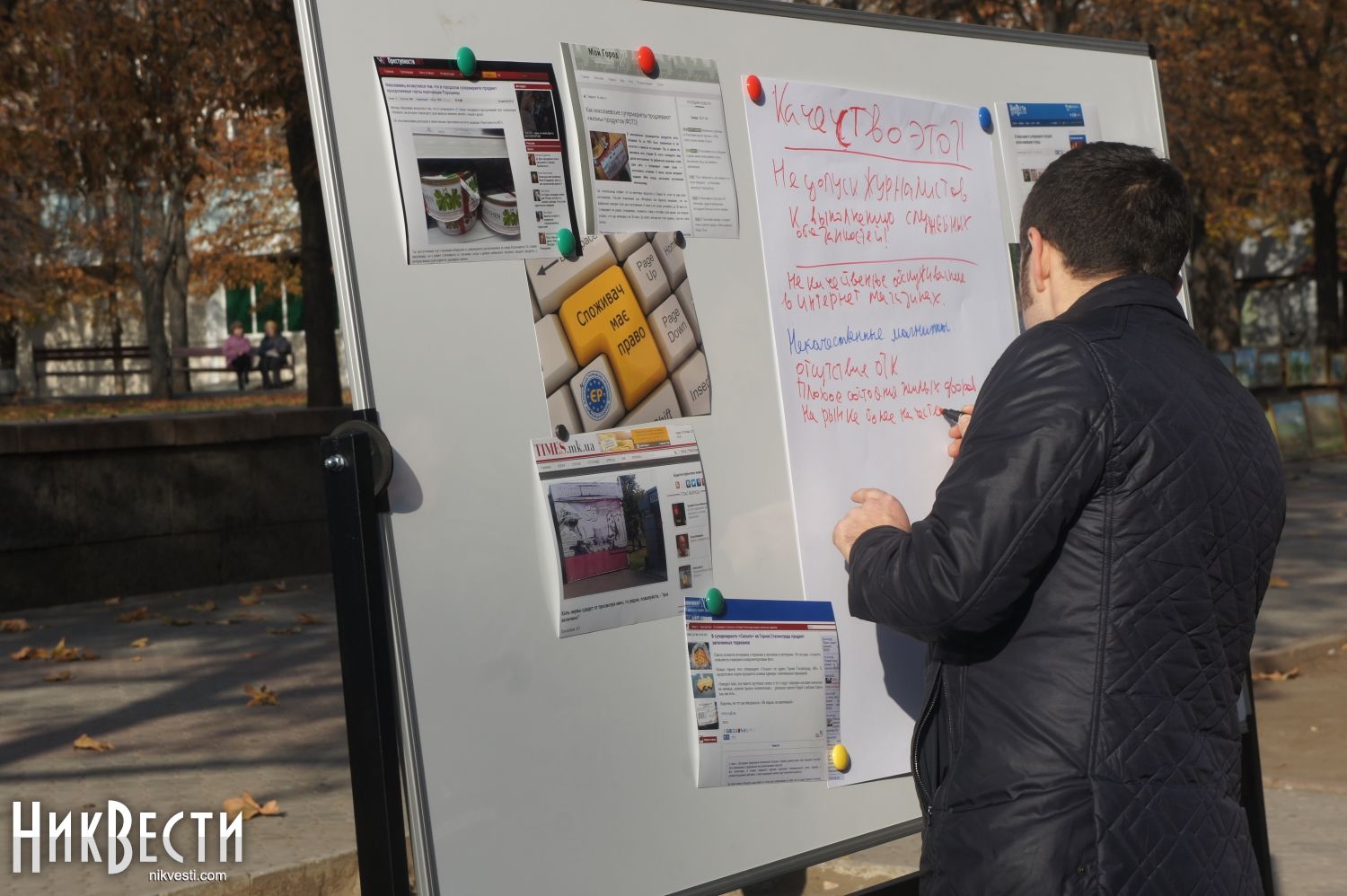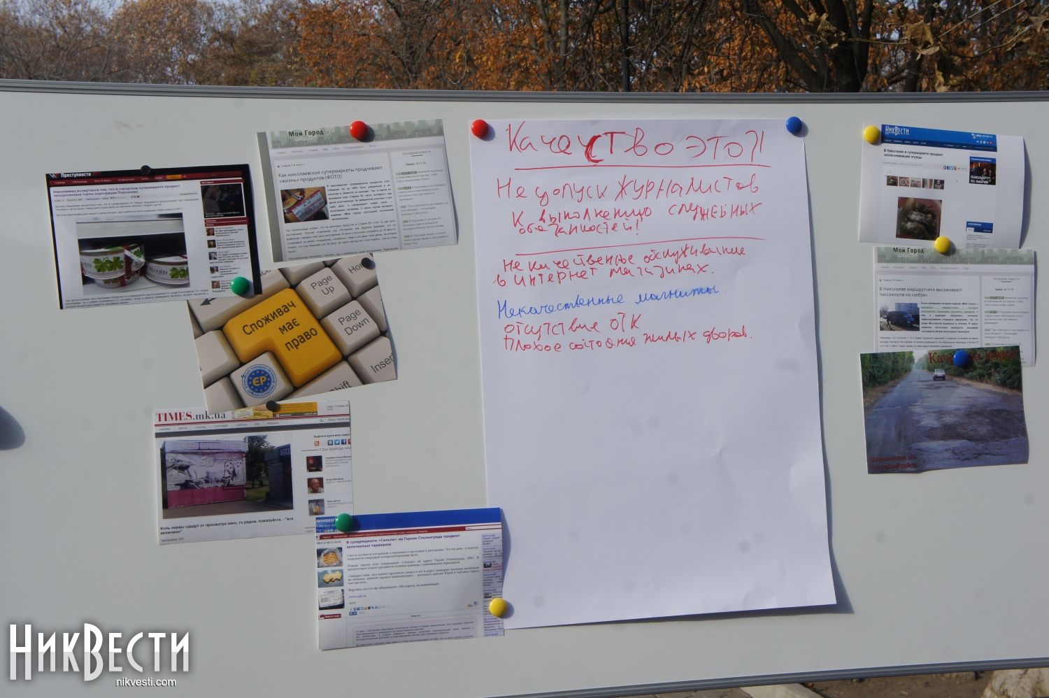 Общественная организация «Европейские реформы» сегодня, 13 ноября, во Всемирный день качества, организовала небольшую фотовыставку и провела опрос среди николаевцев на тему, что именно их не устраивает в качестве николаевского рынка товаров и услуг.