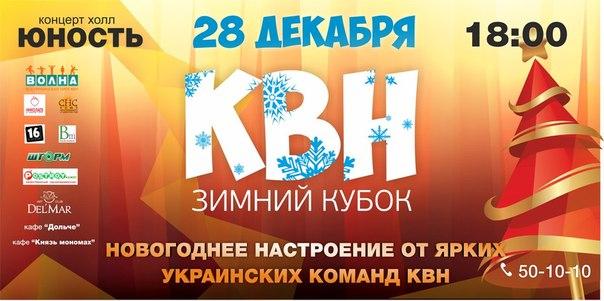 28 декабря, 18:00, к-х "Юность", тебя ожидают выступления ярких украинских команд КВН и множество сюрпризов! Не пропусти!" - пишут организаторы мероприятия.