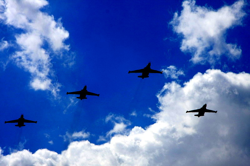 Для выполнения полетных заданий использовались как учебная авиационная техника - самолет Л-39, так и боевая - шесть штурмовиков Су-25.