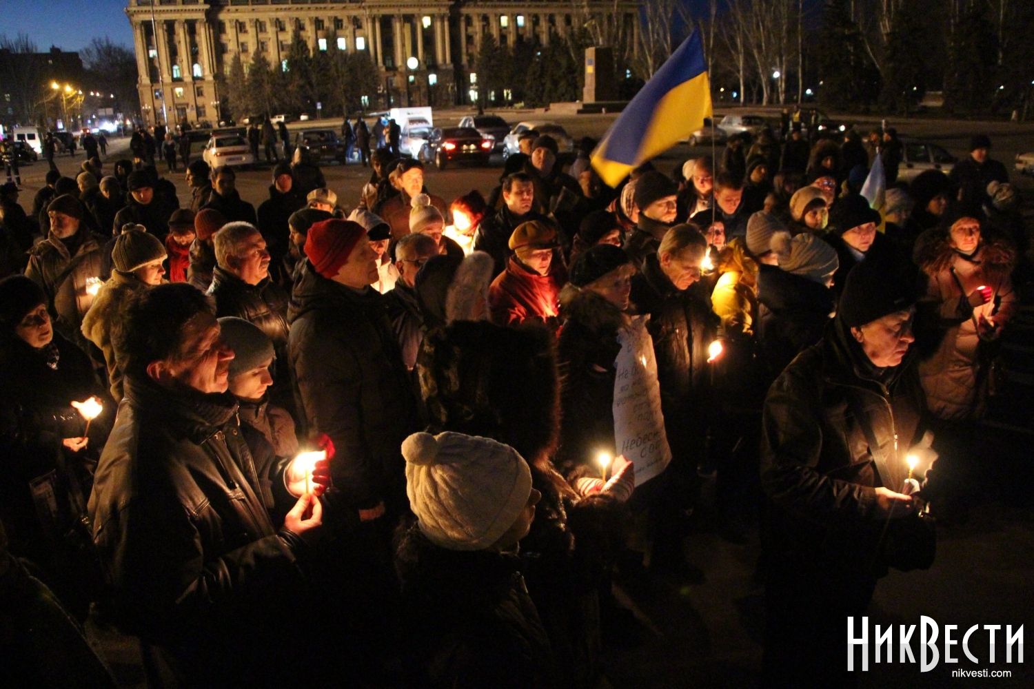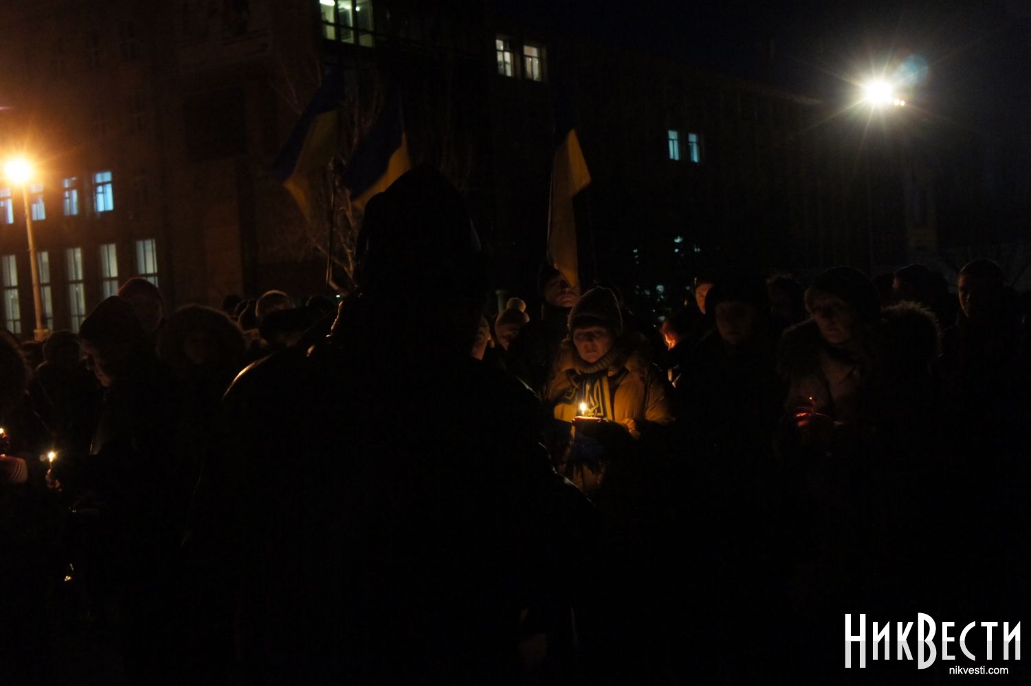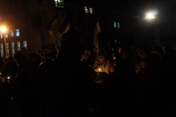 Спустя год николаевцы пришли на то самое место, где собирался Майдан в Николаеве, чтобы с зажженными свечами вспомнить имена тех, кто отдал свою жизнь за новую Украину.