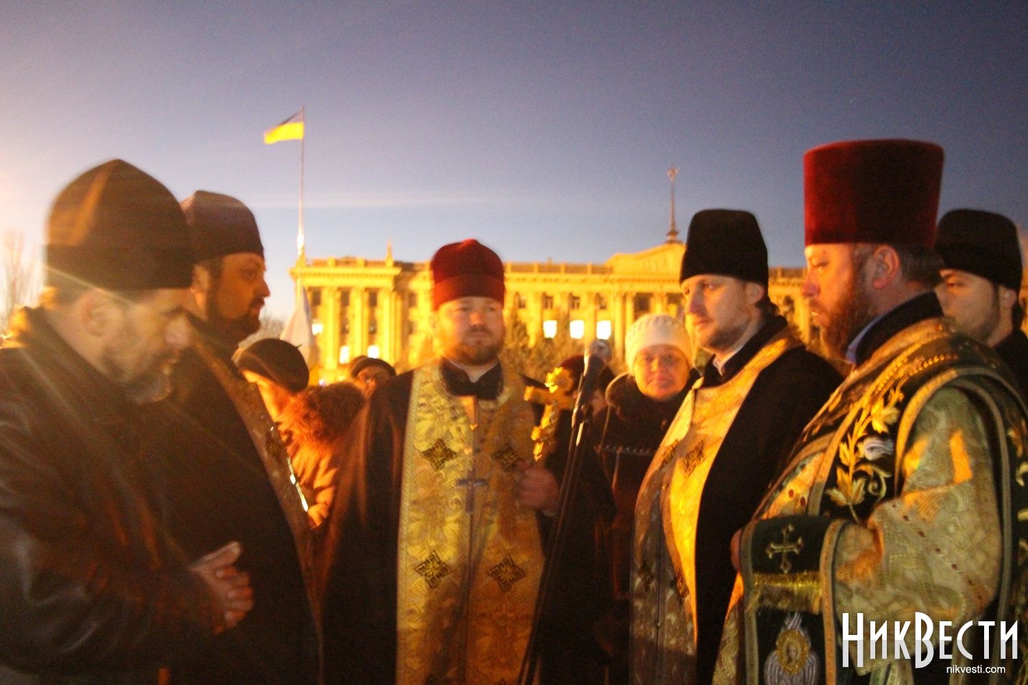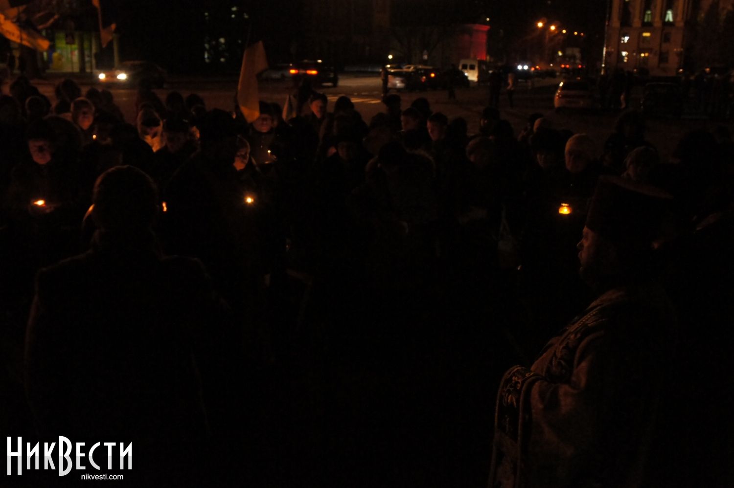 Панихиду провели священники из Кафедрального собора на Садовой, отец Тарас - настоятель Храма Александра Невского и, простоявший с николаевскими активистами весь Майдан, отец Иван - настоятель Леонидо-Феодосиевской церкви.