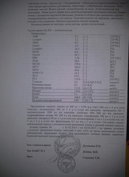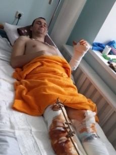 — Сидеть пока он не сможет из-за сильных травм. Ему предстоит операция по ампутации пальца и извлечения осколка из глаза. Правая нога - в аппарате Елизарова, каждый день перевязка занимает три часа и приносит ужасную боль. Также предстоит работа психологического состояния, но после того, как Женя сможет находиться не под действием обезболивающих, - так описывается состояние воина.