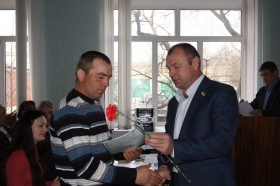 Народный депутат Украины Игорь Бриченко торжественно вручил 11 свидетельств о праве собственности на земельные участки (по 2 гектара) жителям Снигиревщины, участникам антитеррористической операции.