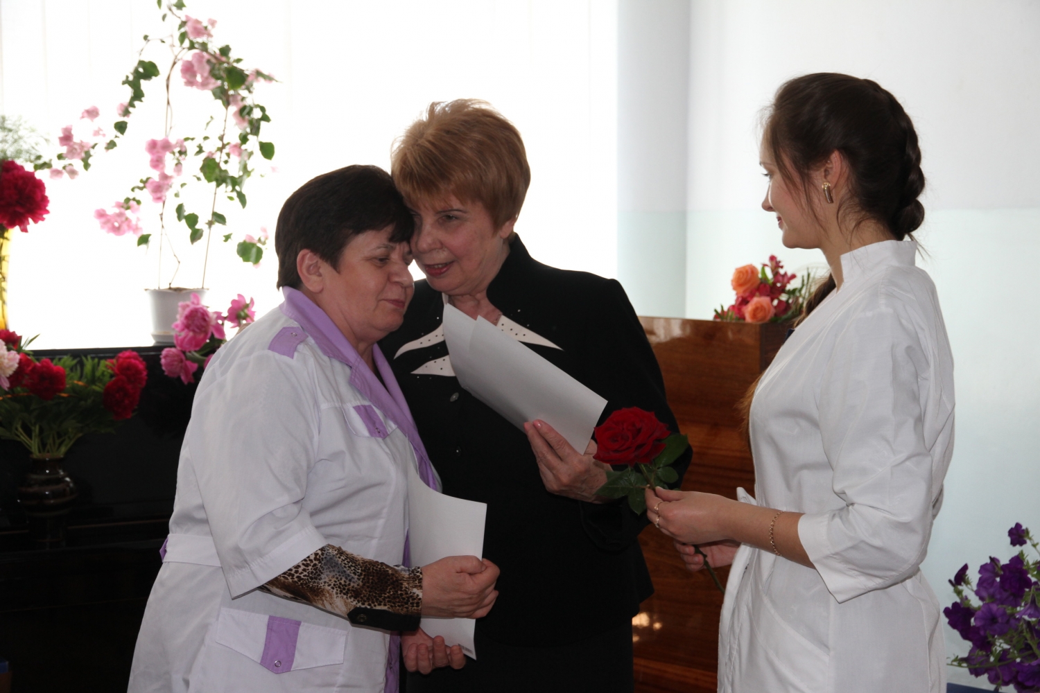 Поздравить медицинский коллектив приехали: главный врач больницы № 4 Василий Кузьмич Гунченко, который когда-то стоял у истоков этой поликлиники, строил ее и принимал первых пациентов, начальник управления охраны здоровья Лариса Дергунова, представители администрации Ленинского района, заместитель городского головы Евгений Шевченко и мэр Юрий Гранатуров.