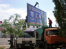 Николаевские коммунальщики демонтировали незаконный билборд с поздравлением от «Оппозиционного блока»