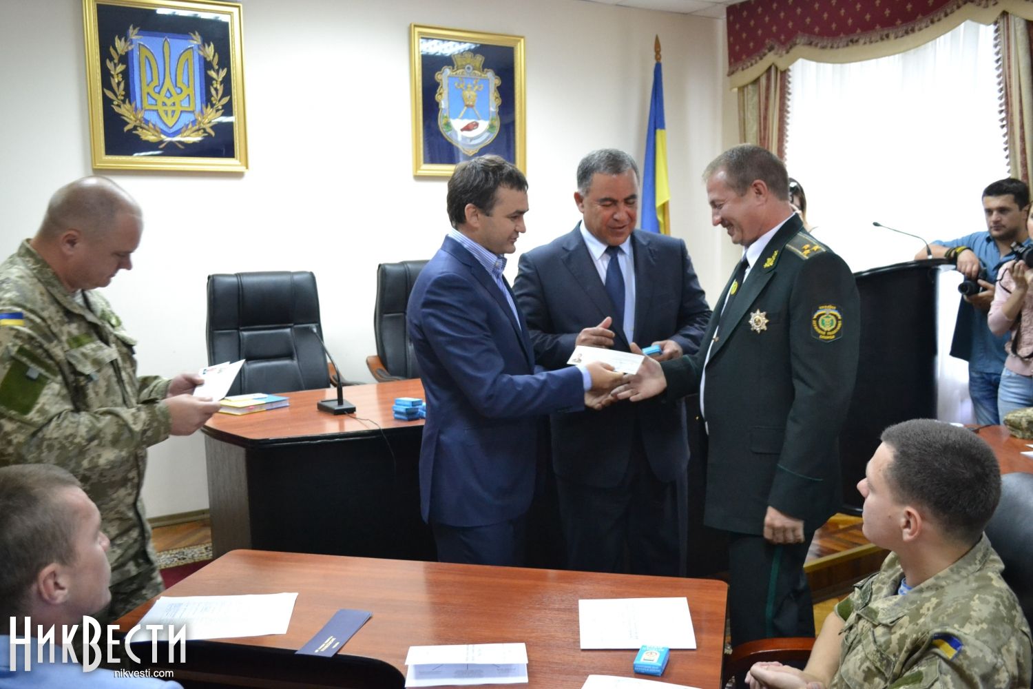 В малом зале Николаевской облгосадминистрации состоялось вручение удостоверений участников боевых действий 28 военнослужащим-николаевцам, прошедшим испытание зоной АТО.