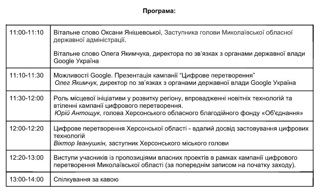 Опубликована программа круглого стола с Google на тему цифрового преобразования Николаевщины