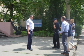 Представители МВД Украины осмотрели условия, в которых будет проходить обучение патрульных полицейских, набор которых начат 15 июля 2015 года в помещении дворца культуры УМВД Украины в Николаевской области.
