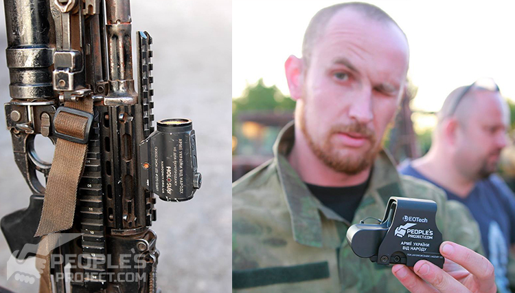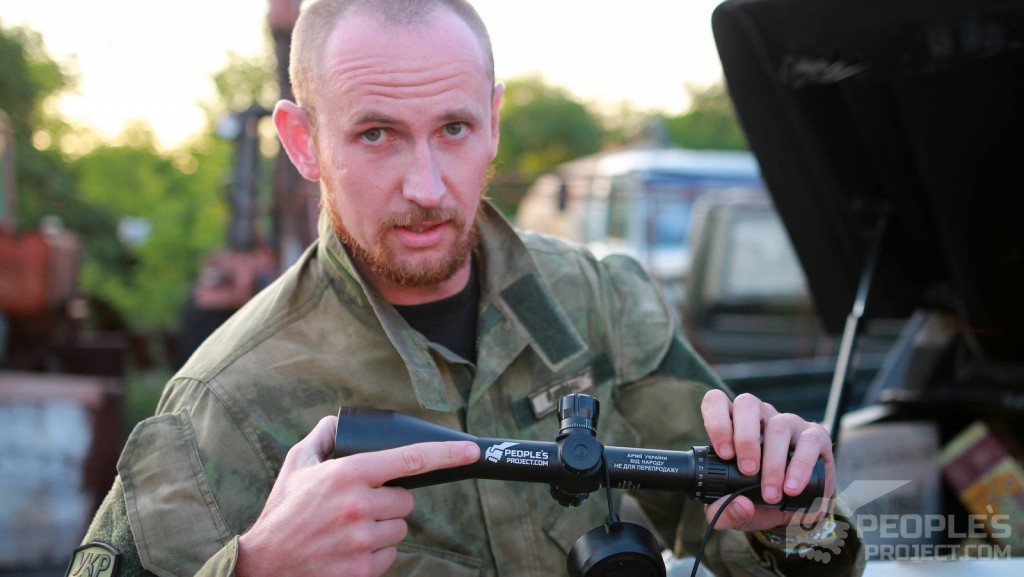 Кроме второго батальона активисты People's Project посетили и разведывательное подразделение первого батальона уже легендарного Павла Чайки. Его подразделение теперь имеет в своем арсенале два новеньких 24-кратных прицела Bushnell и крепления к ним.