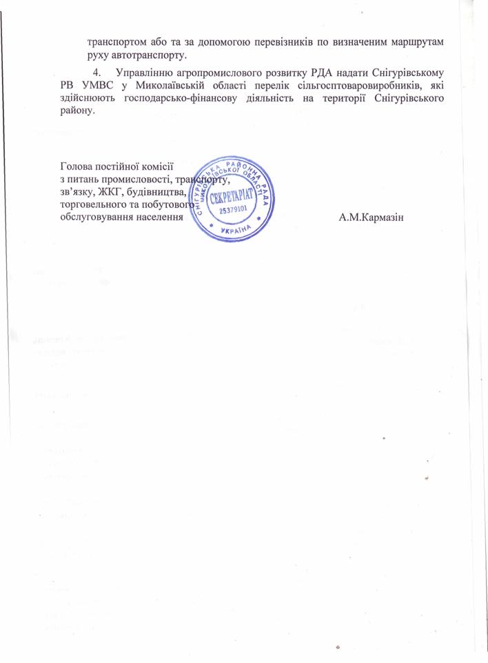 4. Обратиться к руководству «Укрзализныци» о возможности пересмотра тарифной политики на период уборки урожая с целью разгрузки автомобильных дорог.