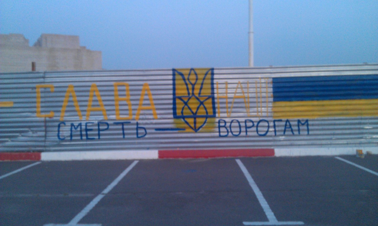 Поверх оккупантской символики националисты нарисовали украинский флаг и трезубец, а также добавили патриотических лозунгов. Вдобавок к этому активисты нарисовали большой красно-черный флаг, сообщает пресс-служба Николаевской областной организации «Свобода».