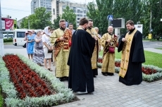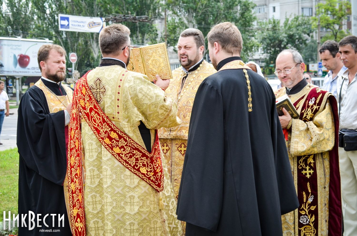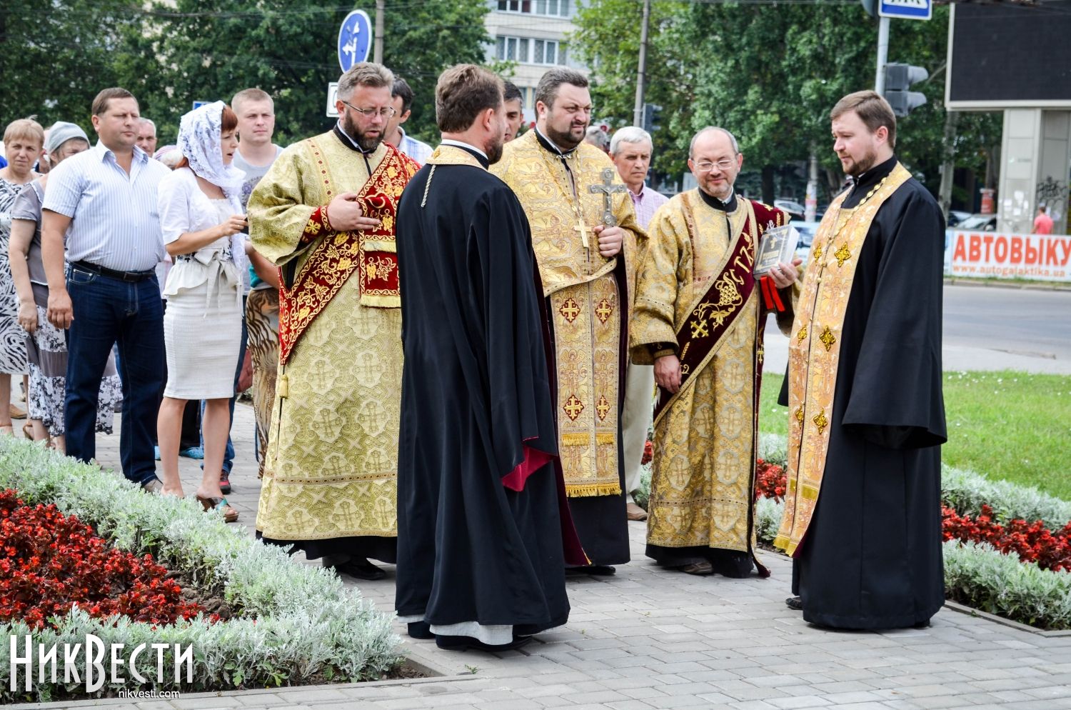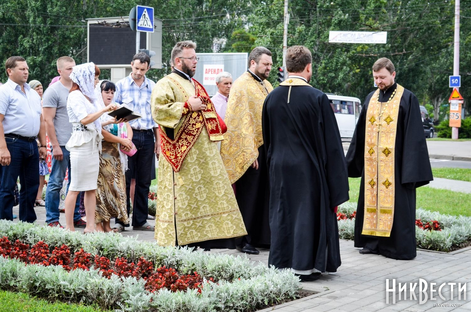 Служба состоялась в Европейском сквере на улице Садовой, передает корреспондент НикВестей.