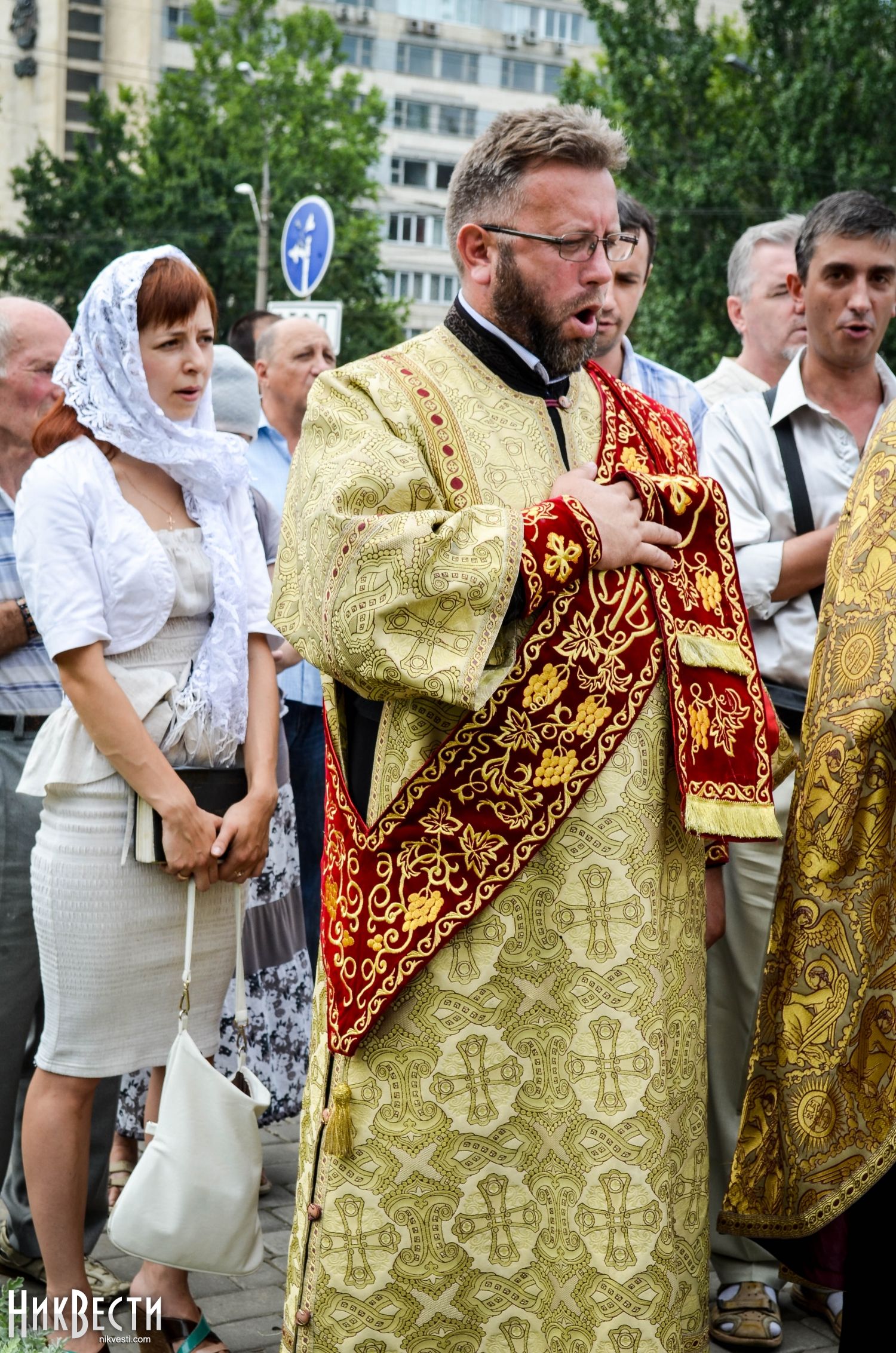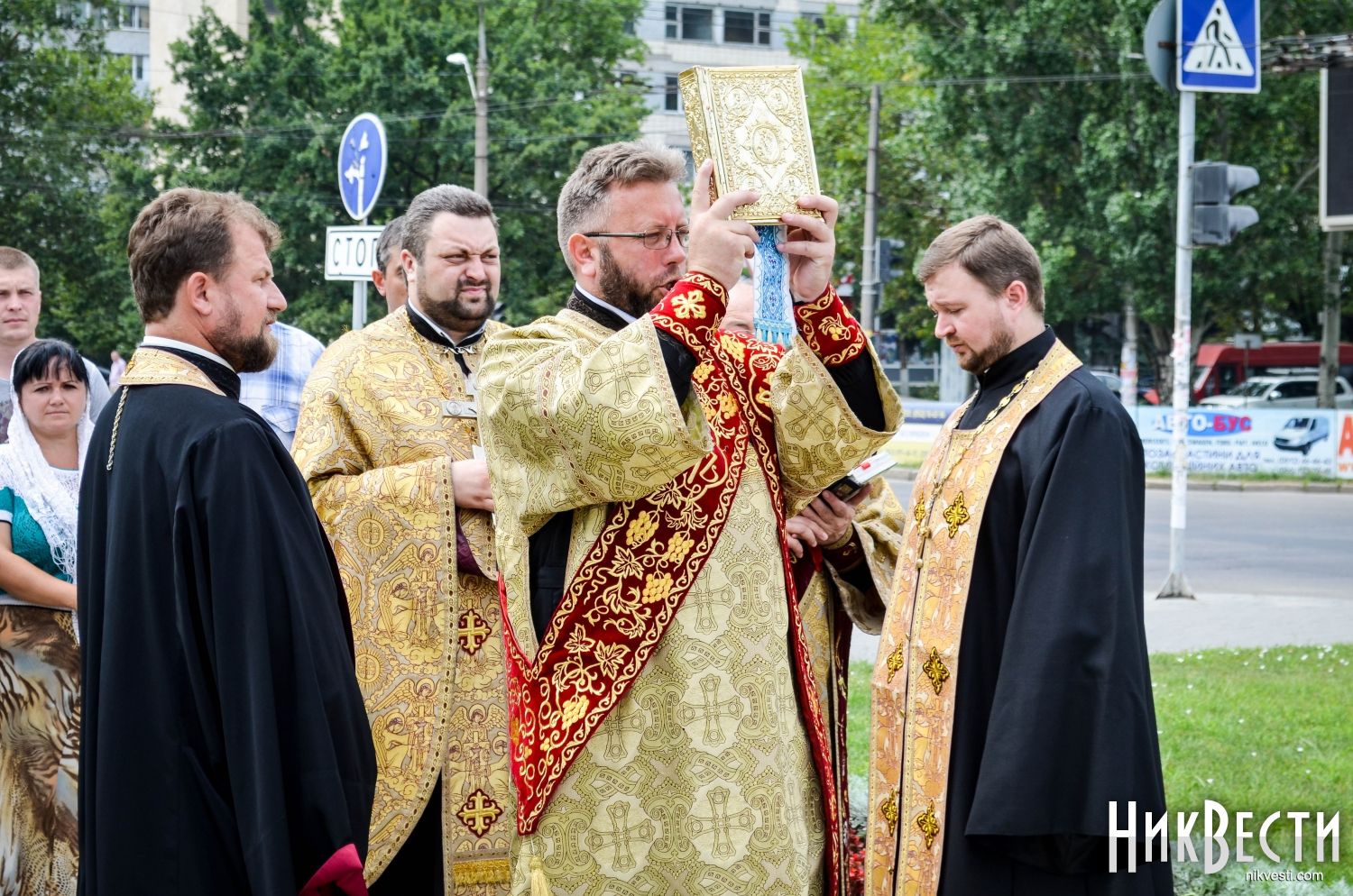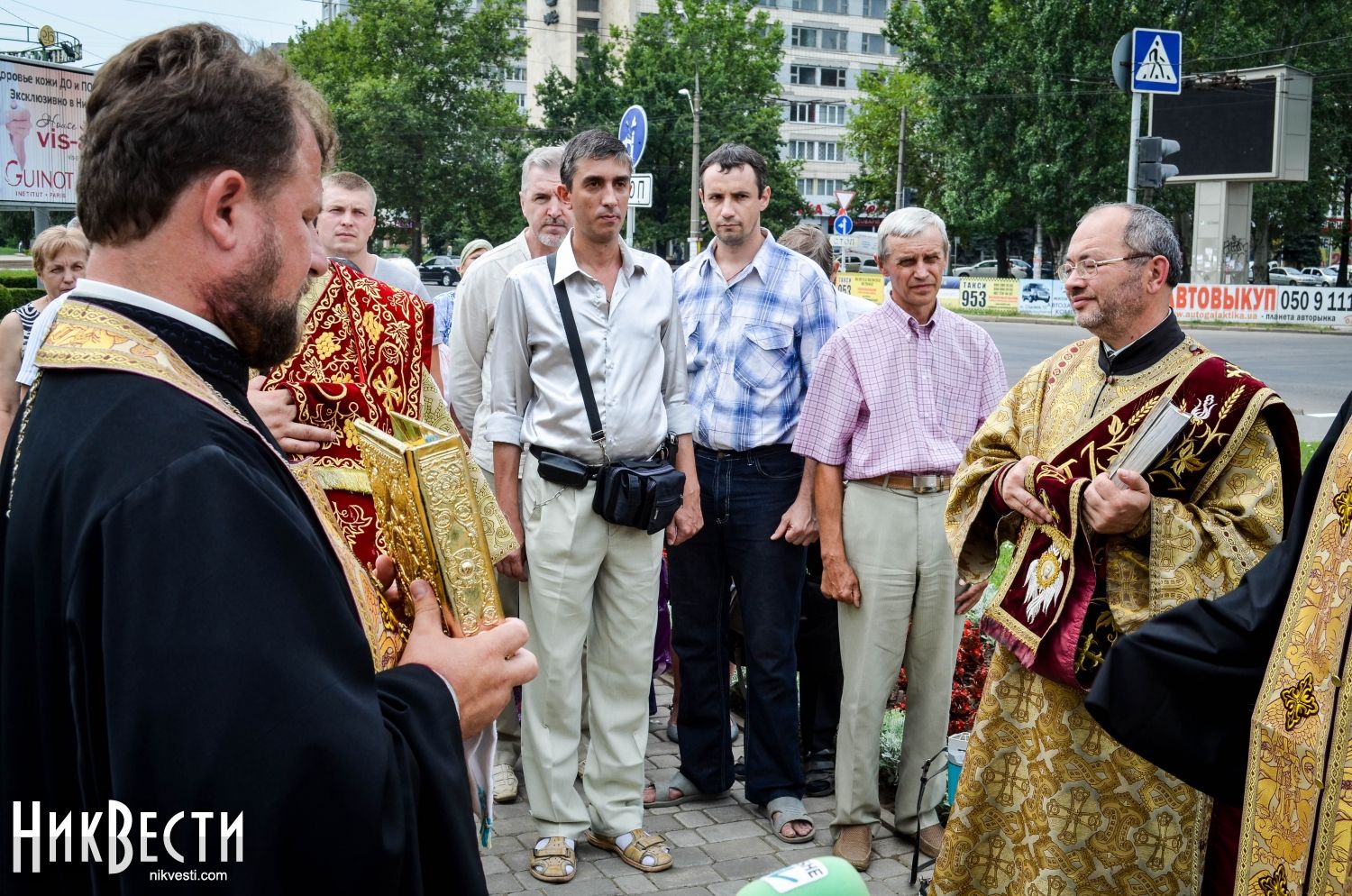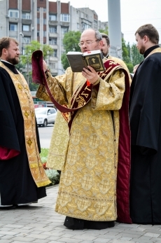 Служба состоялась в Европейском сквере на улице Садовой, передает корреспондент НикВестей.