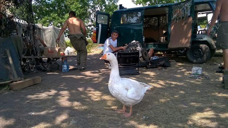 По их словам, этим летом у танкистов семнадцатой бригады появился свой живой крылатый талисман. Откуда пришел гусь, никто из бойцов вспомнить не смог, но птица прижилась и стала настоящим бойцом-танкистом.