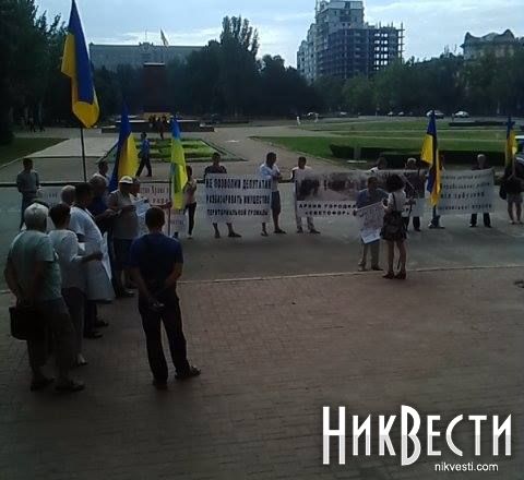 Общественники пикетируют мэрию Николаева, требуя спасти сквер от Пелипаса