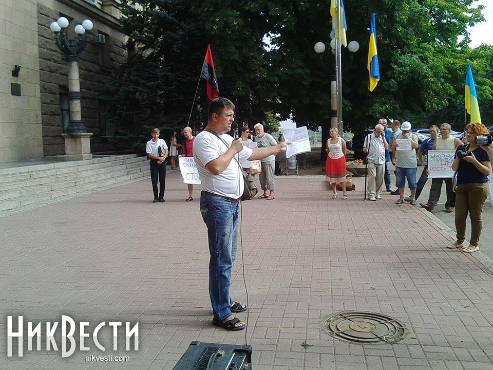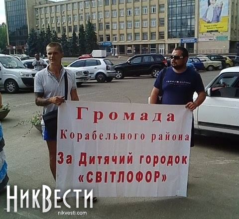 Активисты первой группы объяснили свои требования. По словам главы общественной организации «Коммунальная самооборона» Игоря Деревянко, они требуют от мэра Николаева Юрия Гранатурова и депутатов отменить сделку аренды с ООО «МАР-1» (владельцы Пелипас-Бергман). По мнению общественников, бизнесмены самовольно застроили сквер по улице Леонтовича, 7 рядом с николаевским зоопарком.