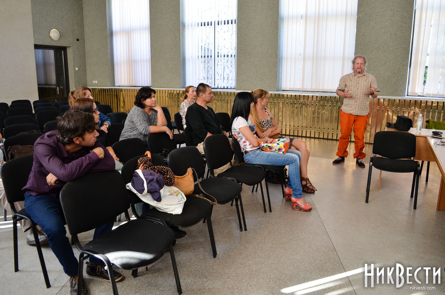 Как объяснила модератор встречи, заместитель главы общественной организации «Арт-оптимисты» Евгения Дулько, Дэвид Бойд достаточно глубоко проникся контекстом последних событий в Украине. Например, в Николаев он приехал прямиком из неспокойного в эти дни Мариуполя.