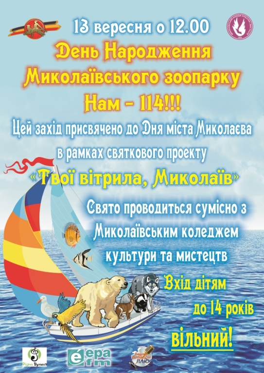 В воскресенье, 13 сентября, в 12:00 на территории Николаевского зоопарка начнутся праздничные мероприятия по случаю 114-летия зоопарка.