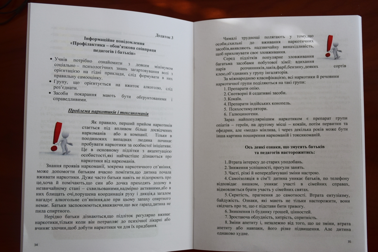 – За летние каникулы мы подготовили, выдали и распространили руководство для классных руководителей школ области по вопросам профилактики вредных привычек. Тема, которая на самом деле болезненная и действительно актуальная. Методические рекомендации написаны просто, интересно и доступно, – рассказала Оксана Янишевская.