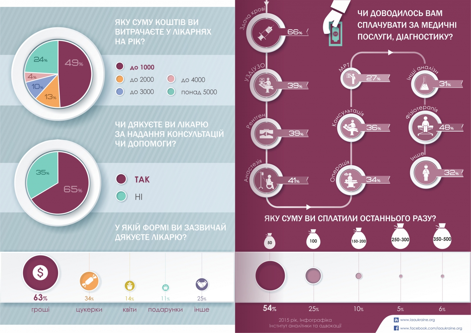 Подавляющее большинство граждан платит деньги в благотворительные фонды при учреждениях здравоохранения. Граждане хотят по крайней мере получать информацию, куда именно направляются средства, уплаченные ими как благотворительные взносы — так утверждают 52% опрошенных пациентов больниц. И делая добровольные пожертвования в благотворительные фонды, они имеют право получать качественные медицинские услуги.