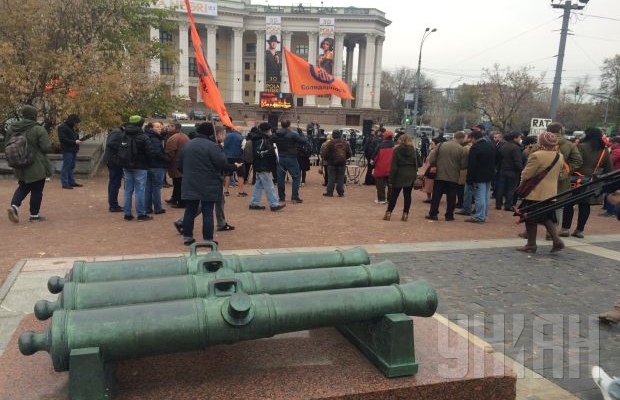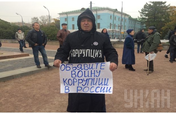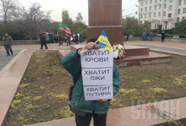 Как сообщает УНИАН в столице России, на Суворовской площади собралось около ста москвичей.