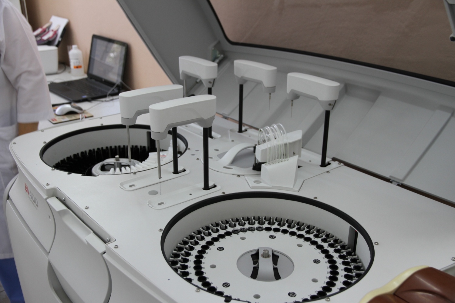 – Этот аппарат позволяет существенно экономить реагенты, а значит, и бюджетные деньги, и время. Если раньше лаборант использовал минимум 5 мл какого-нибудь реагента, время ожидании реакции составляло 1,5 часа. Сейчас нужно всего 200 мкл реагента и 4 минуты для того, чтобы произошла реакция. Новый анализатор выполняет 400 тестов в час, на его «борт» можно загрузить 135 проб пациентов и сразу 88 разных реагентов, и в течение часа мы получим все результаты, – рассказала заведующая централизованной многопрофильной клинической лабораторией Антонина Шакун.