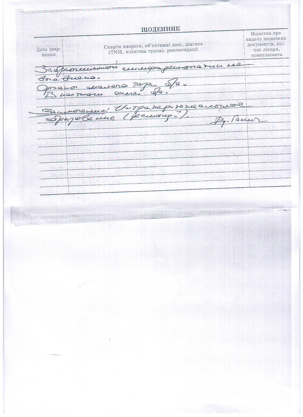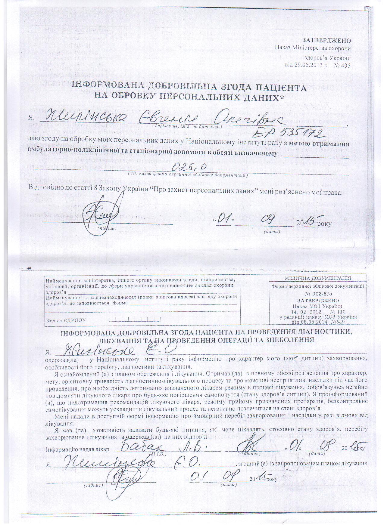 Через несколько месяцев после операции молодую маму отправили на обследование в Киев, в институт рака. Там ей пришлось провести около месяца, она лишь изредка возвращалась в Николаев на один-два дня. В институте заявили о необходимости еще одного операционного вмешательства и предложили собирать деньги на очередную операцию. А денег как раз и не было. Попытались помочь знакомые распространением информации в социальных сетях, но это не дало практически никакого результата.