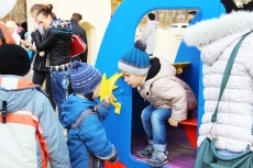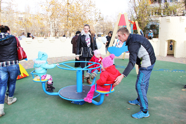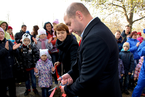 В день открытия местных жителей ожидал сюрприз – игры и конкурсы для детей от любимых героев мультфильмов, море воздушных шаров, традиционное перерезание красной ленты инициатором проекта председателем общества ООО «МСП Ника-Тера» Александром Гайду. После чего детвора могла испытать все качели и карусели на территории восстановленного городка.