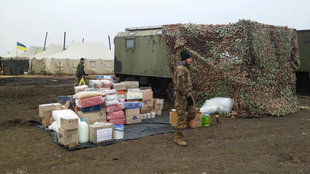 Бойцам передали около 2,5 тонн гуманитарной помощи: крупы, соки, домашнюю бакалею, консервы и рисунки от детей.